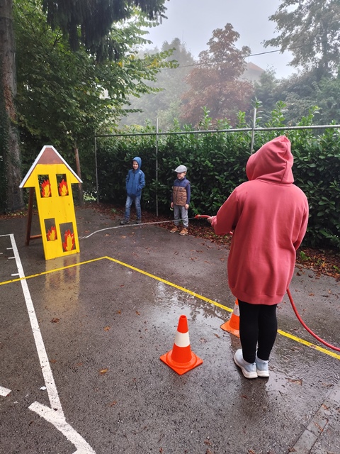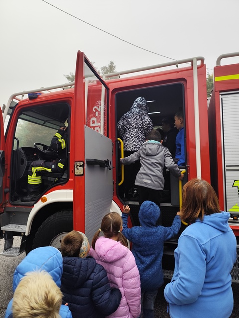 Učencem so predstavili svoje delo in pokazali opremo, ki jo uporabljajo pri gašenju požarov. Skupaj smo si ogledali gasilski avto, prisluhnili razlagi o delovanju sirene in cevi. Gasilci so pripravili poligon, katerega so z veseljem preizkusili prav vsi učenci. Najprej so si nadeli gasilsko čelado preplezali gasilsko lestev, se naučili zavezati tri gasilske vozle in na koncu še pogasili namišljen ogenj na maketi.