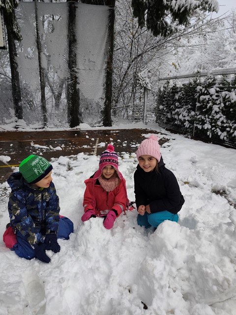 Prvi sneg je na šolsko dvorišče prinesel posebno čarobnost in nepopisno otroško veselje. Ko so prve snežinke pobelile okolico, so se na obrazih otrok takoj narisali široki nasmehi, dvorišče pa je oživelo v igrivem in razigranem vzdušju.