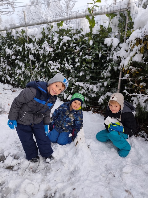 Otroci so se brezskrbno podili po snegu, puščali sledi svojih korakov in se navdušeno prepustili zimskim radostim. Z drobnimi, a zagnanimi rokami so oblikovali snežne kepe, iz katerih so nastajali snežaki različnih velikosti in oblik, vsak s svojo zgodbo in značajem. Smeh, navdušenje in iskrice v očeh so pričarali pravo zimsko pravljico.