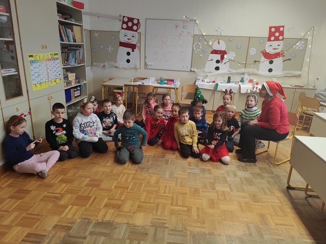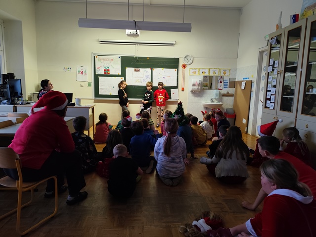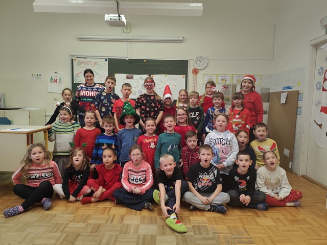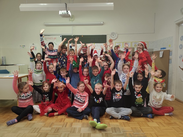 Učence smo predhodno povabili, naj si nadenejo božično-novoletna oblačila in praznične dodatke, kar nam je dodalo še več barvitosti, veselja in pravega prazničnega vzdušja.
