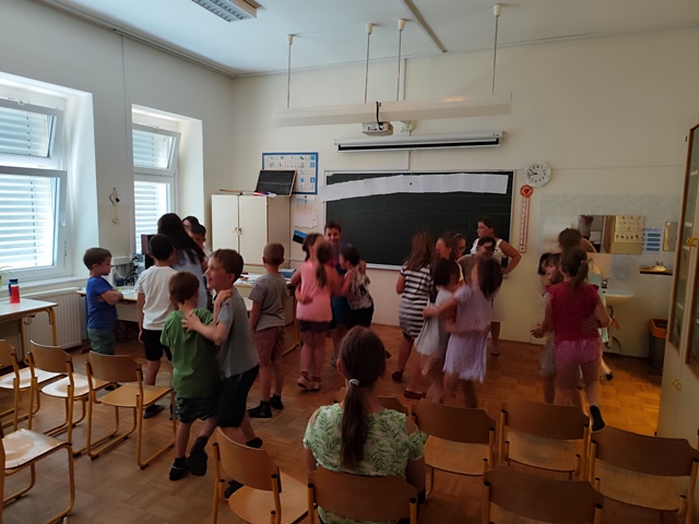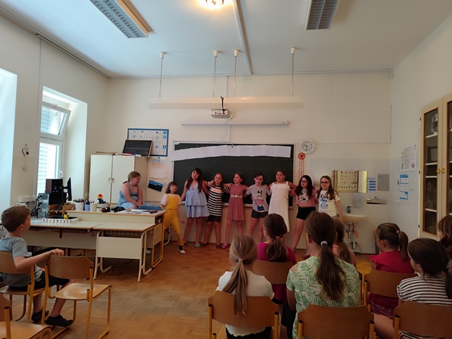 Zadnji šolski dan smo pričeli s podelitvijo spričeval in ponosno zaključili še eno šolsko leto. Nato so nas učenci presenetili s kratko, a zelo zanimivo predstavo, ki so jo pripravili povsem po lastni iniciativi – pohvalno! Dan smo zaključili na prostem ob športnih igrah, druženju in sladkem sladoledu. Bilo je zelo prijetno in veselo slovo pred zasluženimi počitnicami!